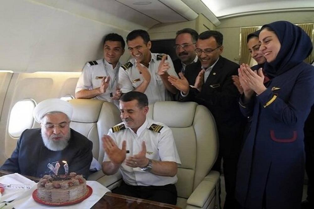 İran prezidenti Həsən Ruhaninin ad günü təyyarədə qeyd olunub.  Yəzd və Kirman vilayətlərinə səfərdən qayıdan Ruhani təyyarədə sürprizlə qarşılaşıb. Prezident təyyarəsinin heyəti tort hazırlayaraq onu təbrik ediblər. Xatırladaq ki,