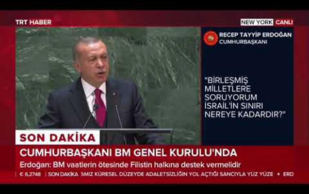 Türkiyə prezidenti Rəcəb Tayyib Ərdoğan BMT Baş Assambleyasının Nyu-Yorkdakı iclasında çıxışı zamanı Dağlıq Qarabağ və Kəşmir münaqişəsi ilə bağlı məsələlərə toxunub. Ərdoğan bildirib ki, Dağlıq Qarabağın BMT qətnamələrinə baxmayaraq hələ