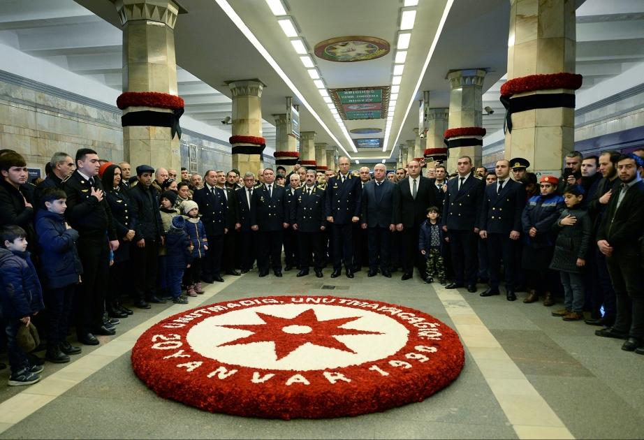 Hər il olduğu kimi, bu il də Bakı metrosunda 20 Yanvar faciəsinin qurbanları anılacaq, Metronun "20 Yanvar" metrostansiyasının platformasına qərənfil çələngləri düzülüb. Saat 12:00 radələrində qatarlardan fit səsinin müşayiəti ilə bir dəqiqəlik sü
